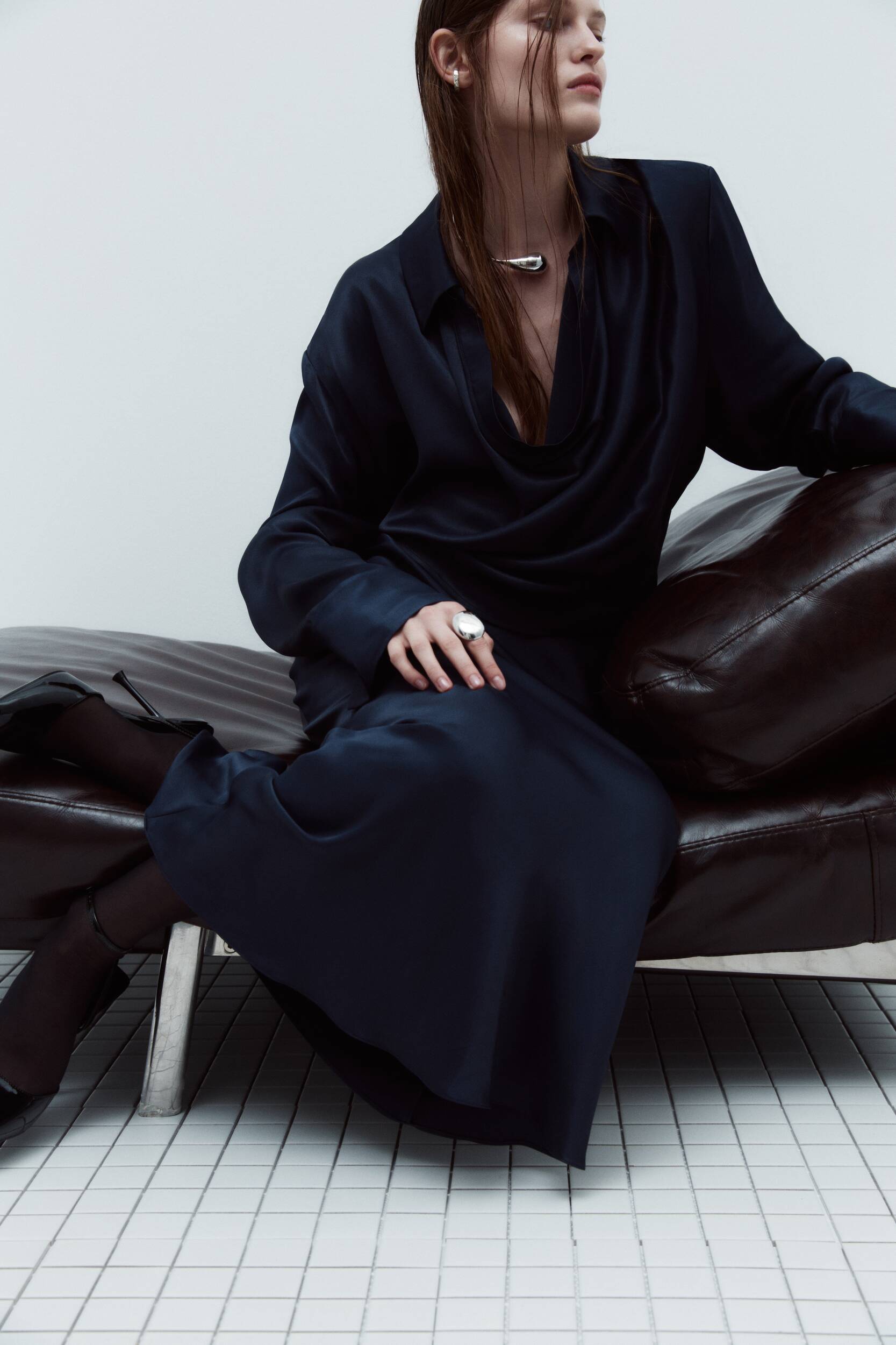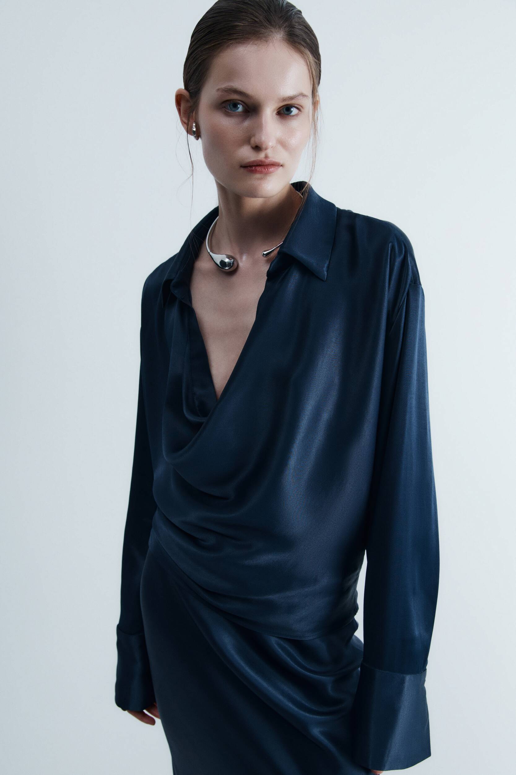Бренд I AM STUDIO запомнился многим нашим клиентам по женственным платьям и блузам, подчеркивающими женственные изгибы тела. В новой коллекции мы сделали тандем в нежном розовом и элегантном синем оттенках. Блуза с манжетами и воротником, как у рубашки, выполнена из атласной вискозной ткани. Выбирайте эту блузу для образов, когда хочется элегантно подчеркнуть зону декольте с помощью выреза.