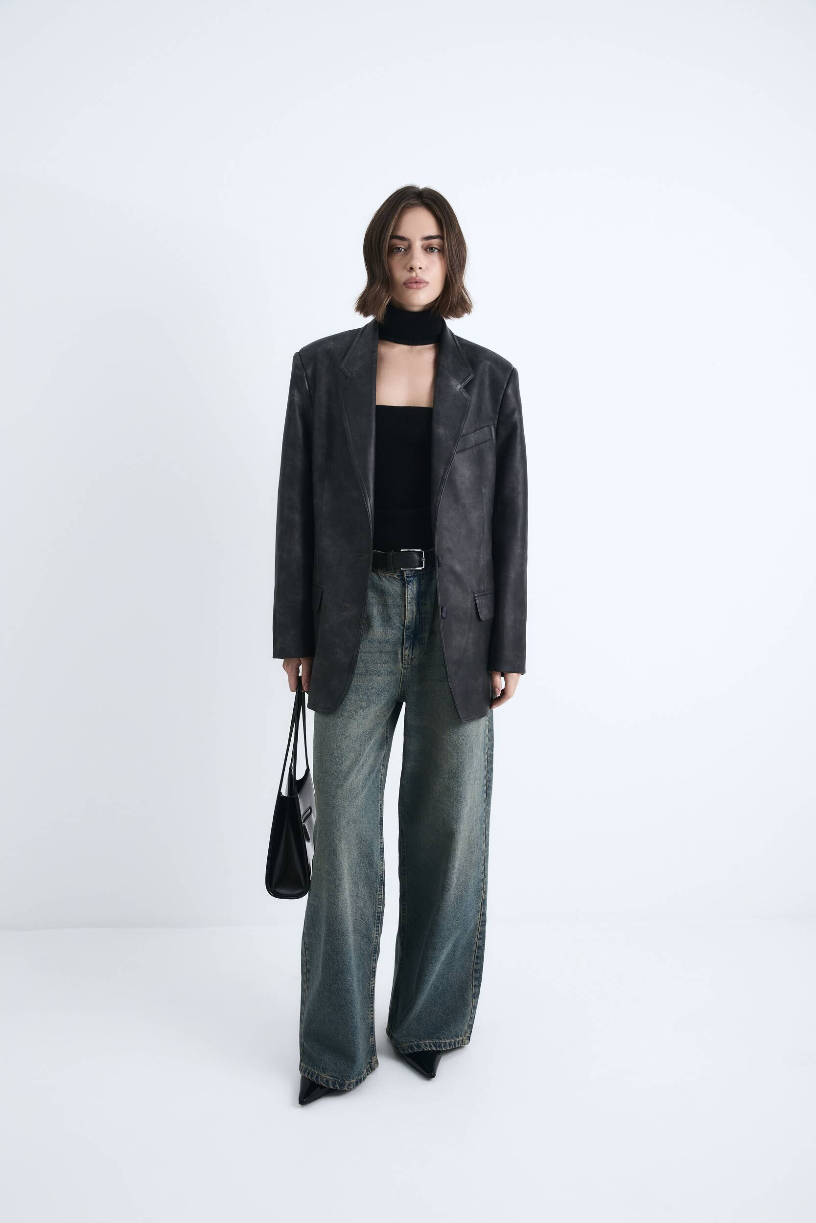 Классическим оттенкам экокожи приходят на смену акцентные принты из 80-х и 90-х, а именно – кожа с «вареным» эффектом. В новой коллекции мы создали капсулу из экокожи, которая стала незаменимой спутницей в городских образах осенью и зимой. Наш фаворит капсулы – жакет с расширенной линией плеча и подплечниками. Сочетайте жакет с юкой миди в том же оттенке или комбинируйте стили и фактуры, добавляя жакет в образы с брюками и джинсами.